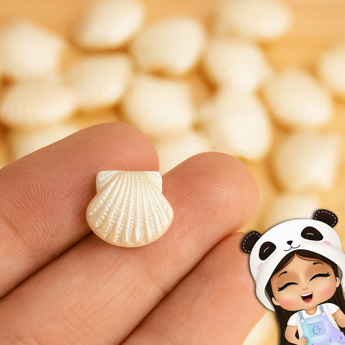 Miçanga em forma de concha, coloração marfim. Acabamento Perolado.